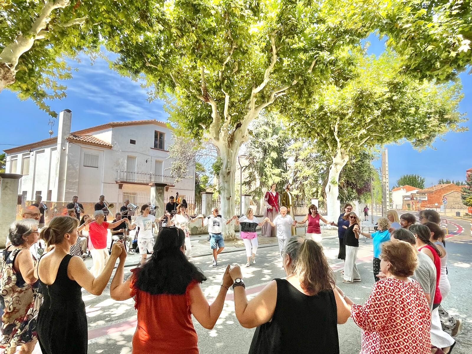 Sortint de missa, ballada de sardanes amb la cobla Tàrrega, a l’ombra dels plataners de l’avinguda Sant Roc. Tot seguir, vermut popular.