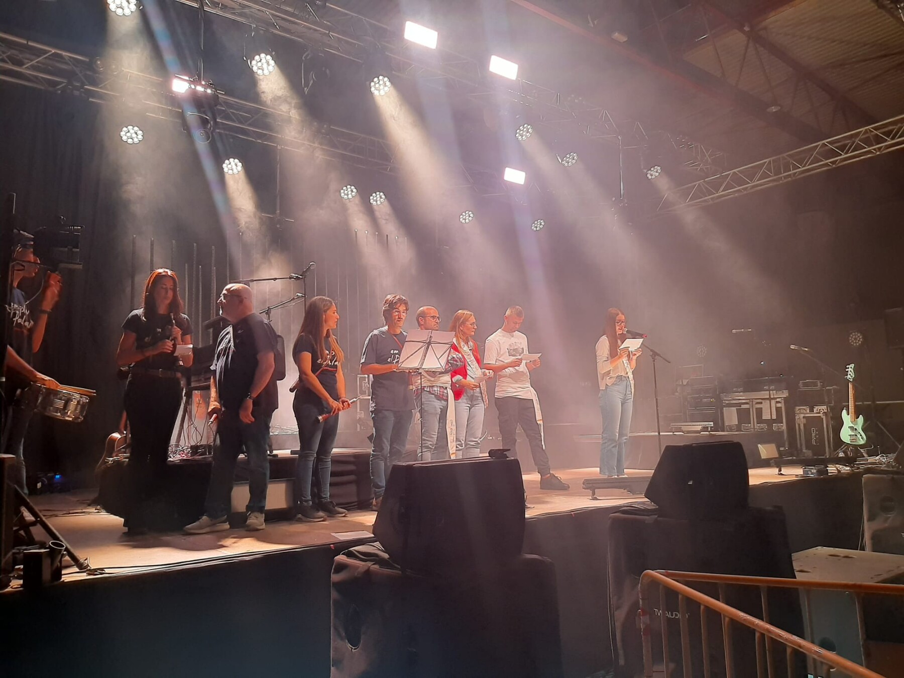 Abans del concert, s'ha projectat el lipdub enregistrat al Palau d'Anglesola el 2014 amb la peça Seguirem lluitant, del grup d'Aiguafreda.