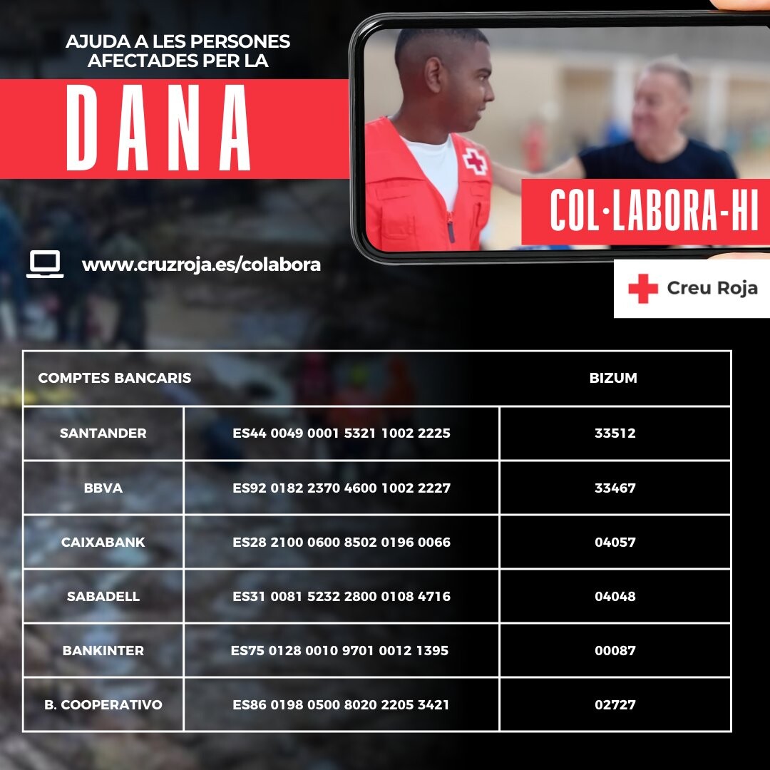 Davant les terribles conseqüències de la DANA, l'Associació Catalana de Municipis i la Federació Municipis recomanem canalitzar els donatius a Creu Roja a través d'aquests canals i números de compte.