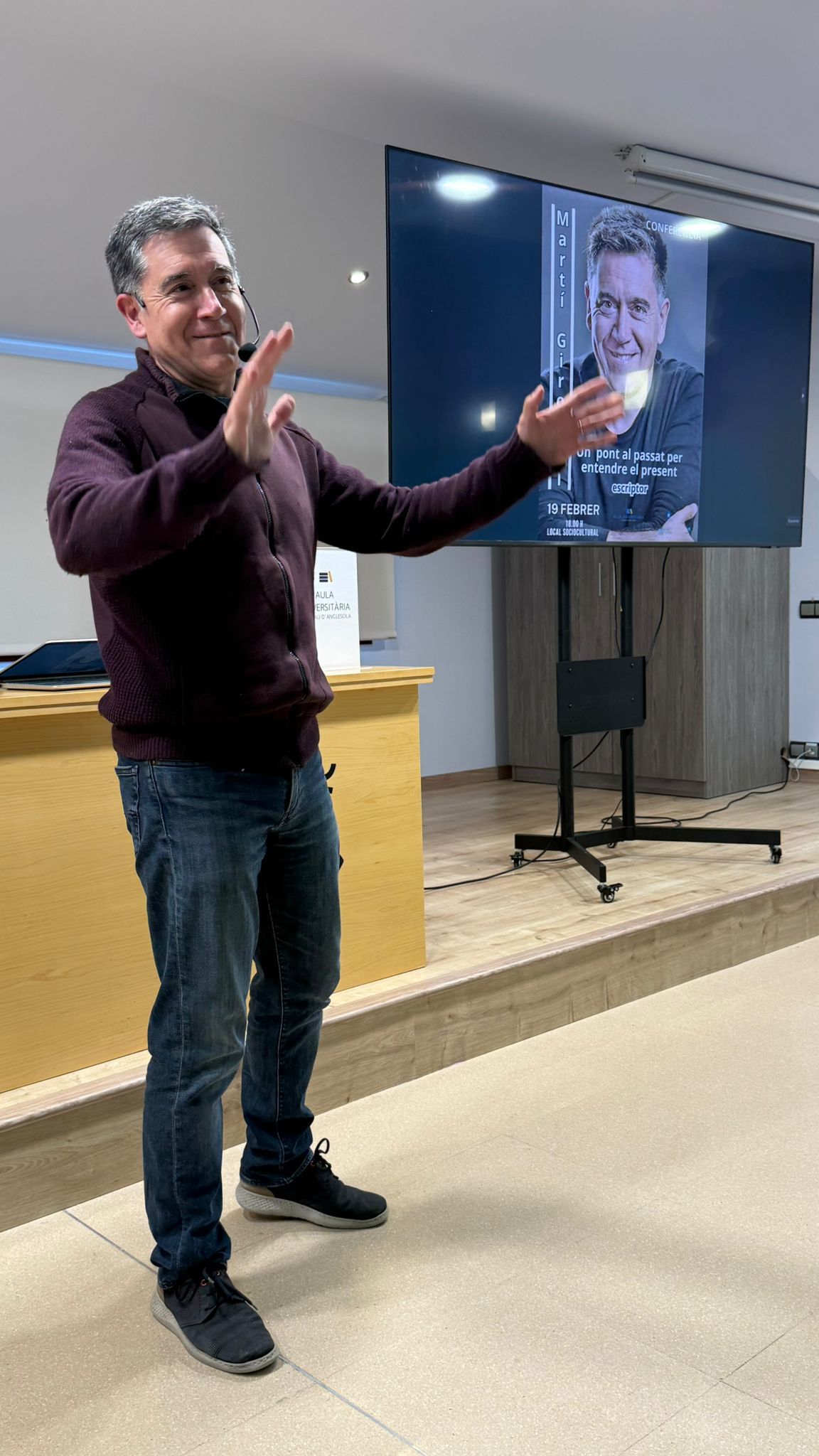 L’escriptor i periodista Martí Gironell, amb un accent gironí encisador i amb una oratòria trepidant va seduir ahir a les persones que el van escoltar a la Sala d’Actes del sociocultural de la nostra Aula Universitària en una xerrada que es va convertir en un al·legat en defensa de l’ofici d’escriptor i, més concretament, en una defensa apassionada dels bons escriptors de novel·les històriques.