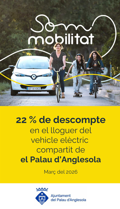 Som Mobilitat és la cooperativa que fa possible el servei de vehicle elèctric compartit al Palau d’Anglesola. Sense ànim de lucre i amb presència arreu de Catalunya, treballa per reduir la dependència del cotxe en propietat i impulsar una mobilitat més eficient, neta i comunitària mitjançant el lloguer de vehicles elèctrics compartits.