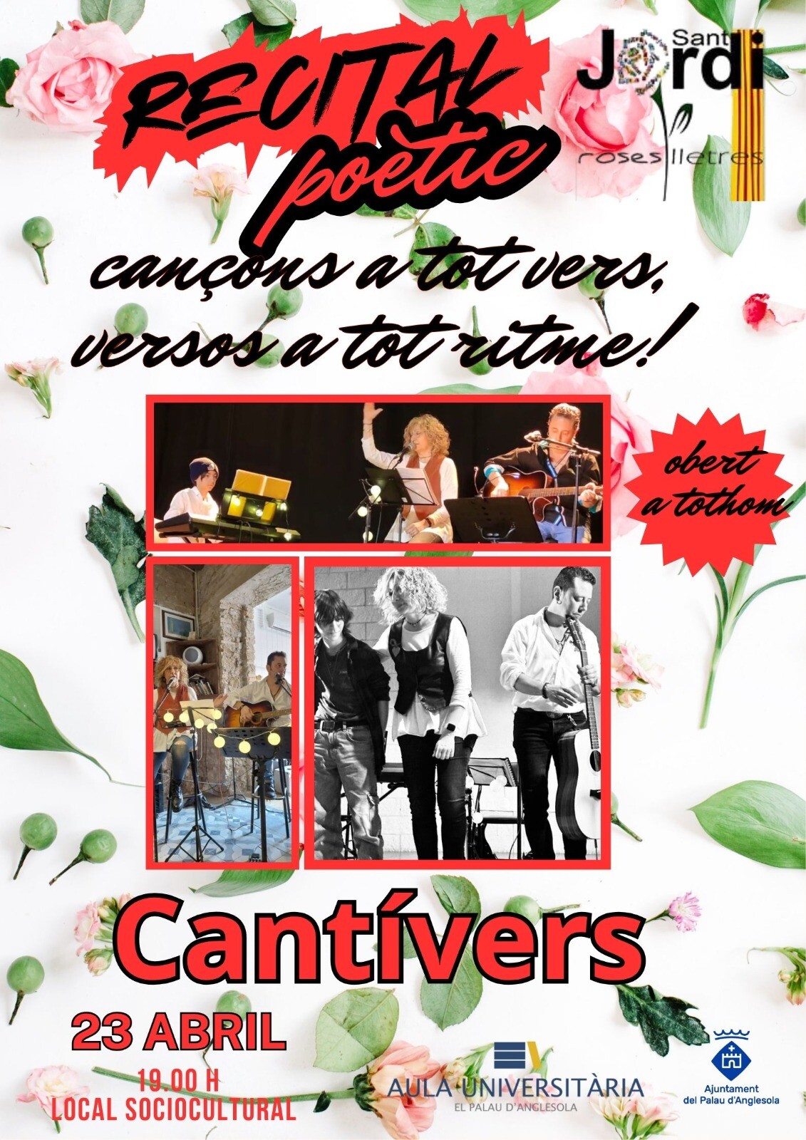 Actuació grup Cantívers. Cançons a tot vers. Versos a tot ritme! Al local sociocultural. Entrada lliure. Ho organitzen: Aula Universitària i Ajuntament del Palau d’Anglesola.